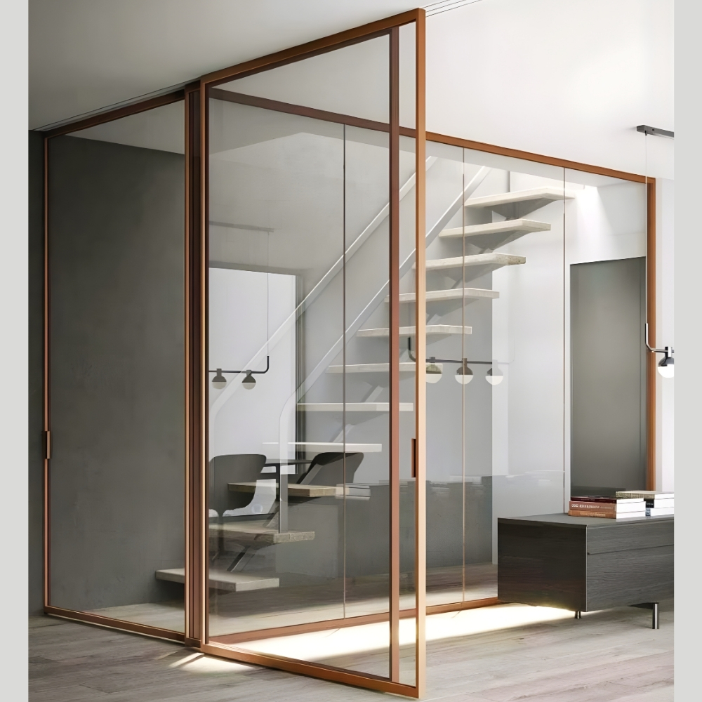 Sleek profiles and clean glass lines enhance office aesthetics.